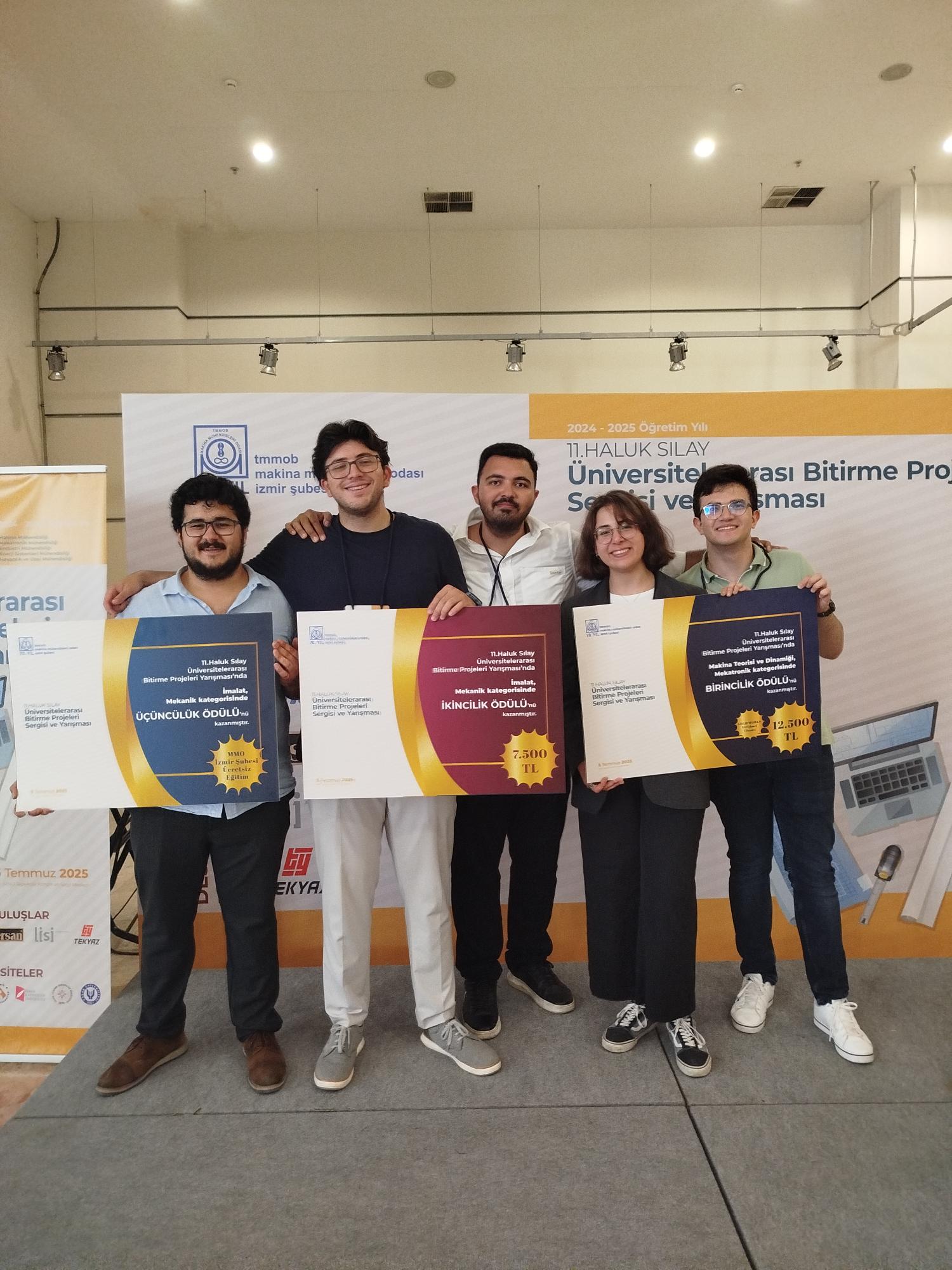 In the Inter-University Graduation Project Exhibition and Competition organized by the Izmir Branch of the Chamber of Mechanical Engineers (TMMOB), our students achieved remarkable rankings in various categories.